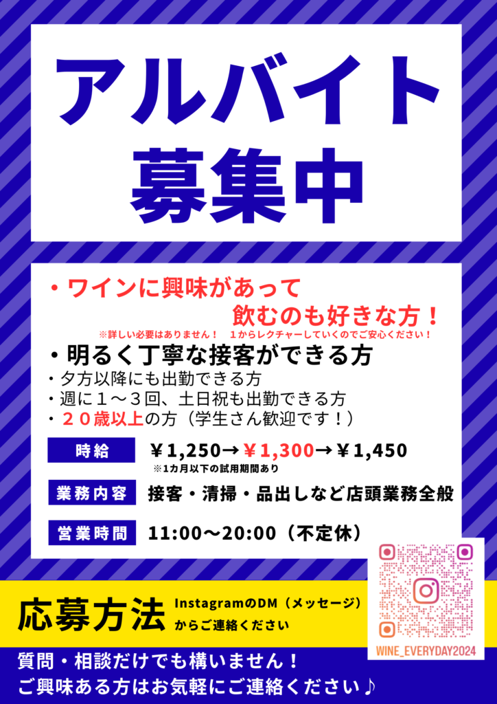 アルバイトスタッフを数名募集しています! ただいまアルバイトスタッフを募集しております! ご応募、ご質問等はインスタグラムからご連絡をお願いします!
